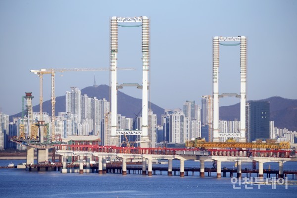 영종국제도시 방면 인천 제3연륙교 건설현장.(사진제공 인천 경제청)